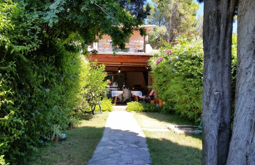The house consists of a double bedroom, a bedroom with two beds (the two bedrooms are connected through a hallway), a living room with kitchenette, a bathroom with shower, large covered veranda, garden, barbecue and outdoor shower.