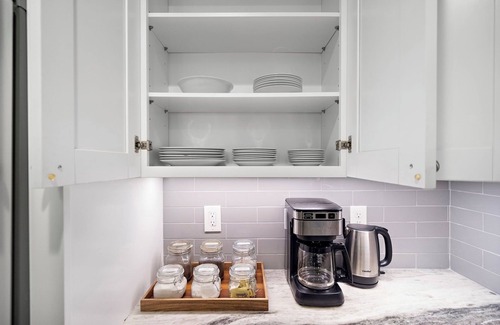 • Fully stocked kitchen + coffee bar