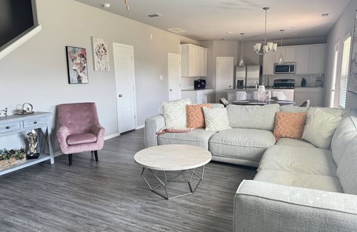 Bring the whole family to enjoy this clean and spacious, 4-bedroom home in a beautiful community. You will discover 2,600 square feet of warm and inviting space, perfect for relaxation, and making memories. The private fenced-in backyard to enjoy a morning cup of coffee with your love on a typical Texas day. When indoors, enjoy fast WiFi, large-screen smart TVs, and great space for reunions. No parties or loud noise, please.