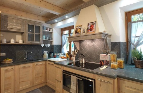 Kitchen: Large kitchen equipped with all amenities, including a dishwasher, induction stove with oven, and washing machine.