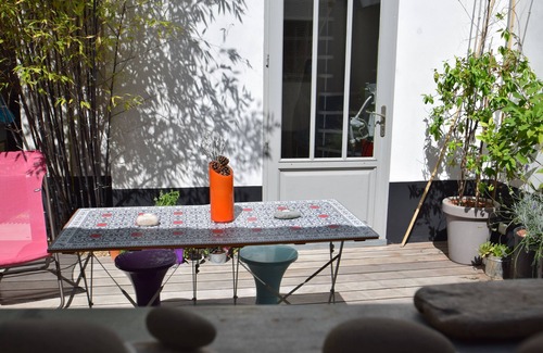House of 100 m², with floor. 3 pieces. Living room (flat screen TV, DVD player, wifi), kitchen (induction hob, electric oven, microwave grill, dishwasher, coffee maker and kettle), 2 bedrooms (1 double bed, 2 single beds), 1 bathroom water, 1 bathroom (washing machine, dryer), 2 WC including 1 separate. Pretty little courtyard (garden furniture, deckchairs). Free parking nearby.