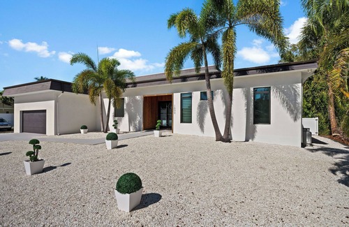 This exquisitely designed and well-preserved custom-built home in Sarasota is a remarkable property that will leave a lasting impression and provide an enjoyable experience for a memorable vacation! FULLY FURNISHED by MM Modern Miami, there’s nothing left to do but move in and savor the lifestyle that awaits within this refurbished modern haven. Through the glass-inlaid double doors, discover a captivating, sun-soaked interior where crisp white tones, soaring ceilings, and gorgeous wide-plank flooring are on show. An elegant brick FIREPLACE warms the seamlessly flowing entertainment areas, featuring curated sculptures by renowned artists. Expansive glass sliders inspire vibrant indoor/outdoor celebrations, inviting you poolside after a sumptuous meal or hearthside games. An open-concept chef’s kitchen beckons with its top-of-the-line appliances, abundant cabinetry, an oversized walk-in pantry, and gleaming quartz countertops that extend to the multi-seater island. Movie buffs will love the state-of-the-art CINEMA ROOM where you can enjoy streaming shows in ultimate comfort. Equal parts form and function, the well-sized private retreats offer a restful escape after a long day, accommodated by exquisitely redesigned baths that feature an imported European tile collection. Double doors reveal an unparalleled primary suite that pampers you with lanai access, a boutique-like wardrobe, and an ensuite exuding luxury at every turn. Fun and leisure abound as additional, POOL TABLE and recently installed recreational amenities flow outside with an alfresco dining area, a built-in BBQ grill, a pristine HUGE SALT POOL, a HOT TUB , and SPORTS COURTS sports for BASKETBALL and PICKLEBALL . New lush landscaping dotted with towering palms enhances the picturesque FULLY FENCED YARD