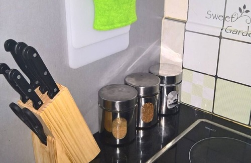 Small dine table with 2 chairs, sofa bed, queen bed with queen mattress, built-in wardrobe, bed lines, towels, new Smart TV, vacuum cleaner, iron, ironing board, new washer rug, laptop friendly working space (mini office).