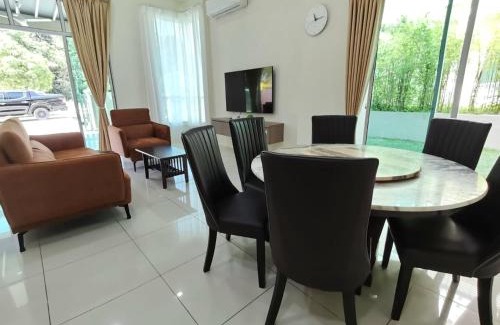 Featuring a garden, IMPIAN STAY #1 #15pax Semi Bungalow House半独立別墅 provides accommodations in Kuah. The air-conditioned accommodation is 3.2 miles from Langkawi Kristal, and guests can benefit from private parking available on site and free Wifi. Langkawi Bird Paradise is 3.6 miles away and Dataran Helang is 4.4 miles from the vacation home. Providing a balcony and mountain views, the spacious vacation home includes 4 bedrooms, 3 living rooms, flat-screen TV, an equipped kitchen, and 4 bathrooms with a shower. Towels and bed linen are featured in the vacation home. The property has an outdoor dining area. During warmer months, you can make use of the barbecue facilities and eat on the private patio. A car rental service is available at the vacation home. Mahsuri International Exhibition Centre is 10 miles from IMPIAN STAY #1 #15pax Semi Bungalow House半独立別墅, while Kilim Nature Park is 10 miles away. Langkawi International Airport is 8.1 miles from the property.