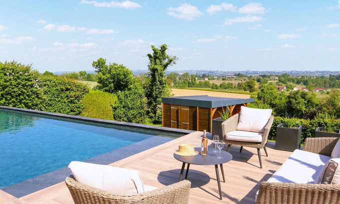 In the heart of the charming region of Vals du Dauphiné, between lakes and mountains, enjoy this cha is located in Sainte-Blandine. In the heart of the charming region of Vals du Dauphiné, between lakes and mountains, enjoy this cha provides accommodation, featuring Pool, Private Pool, Child Friendly, among other amenities. This House features Pool, Private Pool, Child Friendly, to make your stay a comfortable one.