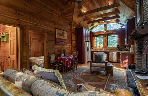Beautiful stone cottage with authentic heart pine walls and wormy oak floors . The fireplace was hand built and is all natural rock from local area. This incredible property is literally steps from downtown Main Street! Wonderful shopping and restaurants ***PROPERTY COMES WITH FULL CONCIERGE SERVICE***