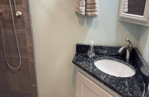 JAMESTOWN RHODE ISLAND - We are offering a fully furnished extended stay studio. Includes weekly linen cleaning. 30 day minimum stay. Off street parking, WiFi, trash disposal, all utilities. Very comfortable space located in walking distance to local restaurants, bakery, shops, grocery & convenience stores. Queen bed, AC, kitchenette, full bath with custom tile shower, granite counters, microwave, mid size frig. Space is ideal for corporate travelers, military, traveling nurse, incoming guest/family additional space, any short stay needs. Decorated with antiques, local artwork, comfortable upholstered seating, smart TV, small dining table. Locally owned and maintained.