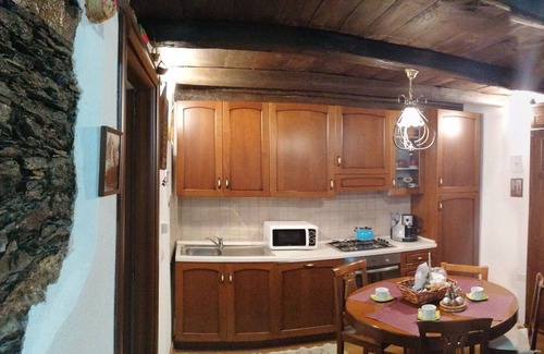Very quiet apartment on the ground floor, in stone, with wooden beams on the ceiling and floors. It consists of two double rooms with mountain view (possibility of adding a single bed on both), living room with a 40sqm kitchenette complete with all appliances, coffee machine and kettle with coffee pods and infusions provided, sofa bed for 2 squares, bathroom spacious with large shower embedded in the rock. The apartment, on request, has a garage of about 50 square meters.