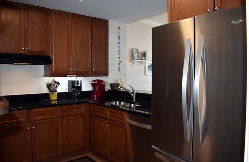 KITCHEN/DINING: Dining Table with seating for 6. In Kitchen there are gorgeous granite counter tops with a breakfast bar. Upgraded, quality appliances include NEW dishwasher, separate smooth cook top, wall oven with NEW built in microwave on top, and NEW Stainless Steel French door refrigerator with Ice Maker. Fully Equipped with all the utensils, pots/pans and then some! Toaster Oven, Toaster, Full size Blender, Keurig Coffee Maker, Regular Coffee Maker, Ice Tea Maker, Lobster Pot, Crock Pot and more!