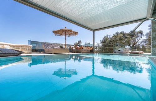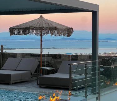 1.5 miles from Faneromenis Monastery in Apolpaina, Isle of View Villa provides accommodations with access to a sauna, hot tub, and hammam. With mountain views, this accommodation offers a balcony and a swimming pool. There's an outdoor fireplace and guests have access to free Wifi, free private parking, and an electric vehicle charging station. Offering a terrace and sea views, the spacious villa includes 5 bedrooms, a living room, flat-screen TV, an equipped kitchen, and 7 bathrooms with a hot tub and a bath. The comfortable, air-conditioned accommodation also comes with soundproofing and a fireplace. The property has an outdoor dining area. Fitness classes are available at the property. Guests can also relax in the garden. Agiou Georgiou Square is 2.4 miles from the villa, while Phonograph Museum is 2.5 miles away. Aktion Airport is 16 miles from the property.