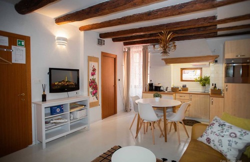 JOLLI One-Bedroom Apartmentis located in the strict city center of Rovinj (pedestrian area). The nearest beach is located in 7minutes walking distance. Interior size is 50m2. It is located on floor: 1. The accommodation has two air conditioners. One air conditioner is in the kitchen and the other air conditioner is located in the bedroom. Bed linen and bath towels are provided by the accommodation itself.It is not possible to access the accommodation with a car because it is located in a pedestrian area.