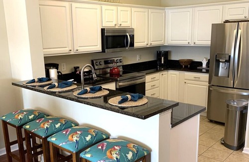 The condo is furnished with 2 incredibly comfy king beds (one has the ability to split into 2 twins), along with one wonderful queen bed. The den and living area are spacious, with a dining room table and vaulted ceilings. The kitchen is large, and fully stocked with everything found at home. The condo is very family friendly with 2 pack & plays and a high chair. We have games, puzzles, and books so you and your loved ones can enjoy quality time and fun together. Want to pack less for your vacation? We've got you covered with our supply of beach chairs, umbrellas, cooler, and 2 beach wagons. Each bedroom and living room have smart TV's with cable TV and streaming apps. There's even Alexa devices throughout the condo to play music. We have not forgotten one little touch in this beauty.