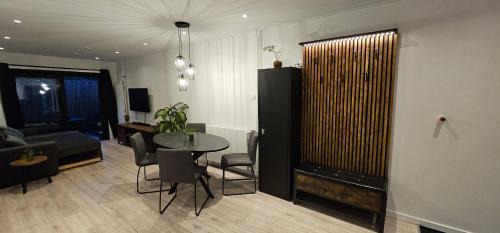 Food & DrinkTea/Coffee makerBathroomBody soap, Towels, Private bathroom, Toilet paper, Hairdryer, Free toiletries, Shampoo, Walk-in shower, Shower, ToiletMedia & TechnologyTV, Streaming service (like Netflix), Radio, Flat-screen TV, Cable channelsKitchenElectric kettle, Coffee machine, Stovetop, Refrigerator, Kitchenware, Microwave, Kitchen, Dishwasher, Toaster, Washing machine, Oven, Wine glasses, Cleaning products, Dining tableLiving AreaSitting area, Sofa, Dining areaGeneralSoundproof, Fire extinguisher, Hardwood or parquet floors, Smoke Alarm, Private entrance, Key access, Heating, Fan, Trash cansOutdoorsPatio, Outdoor dining area, Outdoor furniture, Terrace, BarbecueBedroomWardrobe or closet, LinensAccessibilityEntire unit located on ground floorBuilding CharacteristicsDetachedRoom AmenitiesNon-feather pillow, Socket near the bed, Drying rack for clothing, Sofa bedEntertainment & Family ServicesBoard games/puzzles |