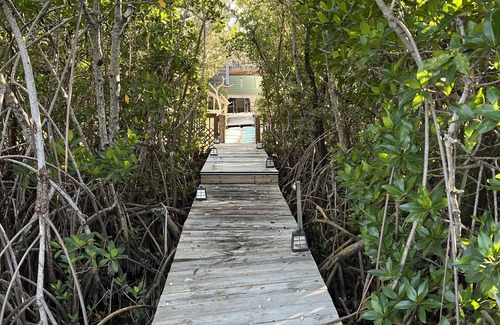 Escape from reality in a hidden waterfront retreat. Lots of areas to chill and relax: upstairs deck, patio, spacious tiki bar or on the dock. House is full of keys charm and close to the best that Key Largo has to offer.