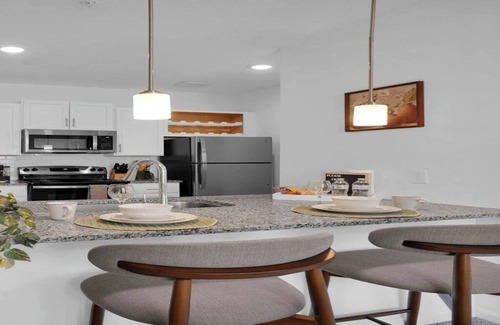 Relax in a chic, modern living room with cozy seating, fast WiFi, and Roku TV. Stream all your favorites on Netflix, Hulu, Prime, and more — just log in and unwind.