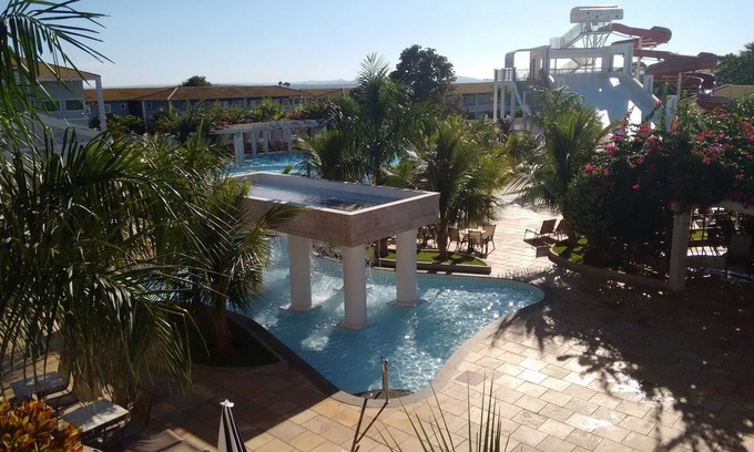 "Jardins Acqua Parque" water park (24 HOURS) is private to guests, being one of the largest private water park of caldas nova, with more than 16,000 square meters of pure leisure, which brings as a "flagship" a beautiful Wave pool (not in caldas nova, another private park with wave pool), 2 wet bars, 1 semi-olympic pool, 1 whirlpool and several other hot and cold pools, totaling 14 pools, plus 6 hot tubs, 2 saunas, 1 large ramp and 1 large toboggan run, games room, plus full playground with ramp and toboggan for children only, playroom (trampoline, ball pool, several toys, all accompanied by monitors), baby changing room, Mom's cup and nursery. For food the park offers an excellent self-service restaurant, with ample and pleasant space, pastries, kiosk with ice cream and açai and snack bar, in addition to the two wet bars already mentioned.
