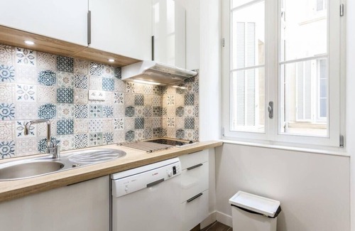 L'appartement est situé au 1er étage d'un immeuble haussmannien avec ascenseur et se compose d’un agréable espace de vie ouvert sur une cuisine entièrement équipée, moderne et fonctionnelle dans laquelle vous pourrez cuisiner avec tous les équipements nécessaires. Lumineux et reposant le séjour est équipé d'une télévision et d'un canapé convertible pouvant accueillir jusqu'à deux personnes supplémentaires. La chambre est également équipée d'un lit deux places et d'un dressing pour ranger vos affaires durant votre séjour.