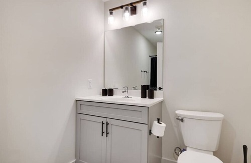 The inviting full bathroom is completely private and separated from the main room. It is stocked with all essential toiletries, so you don’t have to worry about packing anything extra.