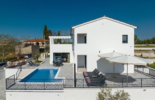 Villa La Perla is located in the peaceful village of Krnica in Istria, known for its authentic atmosphere and proximity to the unspoiled coastline with numerous coves and beaches just a few kilometers away. The house spreads over two floors: on the ground floor there is a spacious, fully equipped kitchen with dining area and living room, one bedroom with en-suite bathroom, and access to the terrace and garden with pool. The upper floor features three additional bedrooms, each with its own bathroom, ensuring full comfort and privacy for guests. The outdoor area offers a pool with sun loungers, a barbecue, and an al fresco dining space, while entertainment includes table football, Netflix content, and a children’s playground. Surrounded by greenery and vineyards, Krnica provides an ideal setting for a relaxing holiday, with amenities such as a grocery store and a restaurant available in the village. Nearby, you can find rocky and pebble beaches including Kalavojna Bay and Wild Beach, perfect for exploring and enjoying the crystal-clear sea. ***Youth groups are not allowed in the house!
