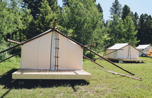 In addition, seasonally, we have15 glamping tents with comfortable king beds. They are tucked away along beautiful Brackett Creek, providing a serene experience with nature.