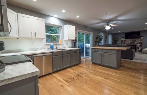 With 4 large bedrooms and 2.5 bathrooms (all newly renovated), this home has all the amenities you're looking for when traveling to the Poconos including boats, fire pit, hot tub, central A/C, BBQ, fresh linens & fast wifi. The fully fenced yard is perfect for your pets!