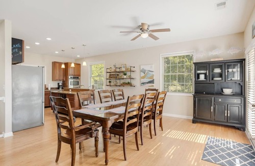 Welcome to our sweet lake retreat! Brand new listing! Relax with the whole family in our peaceful lakefront home. This is a newer construction home with custom upgrades and room to sleep up to 14. This is in the BEST location on Lake Greenwood! We are located on the main water right across from Twin Rivers Landing which is a great place to rent a boat for the day. If you are bringing your own boat the closest ramp is 2.8 miles away at Riverfork Boat Ramp. We are right around the corner from Harris Landing which is a local dive that has excellent food and delicious drinks at their Tiki bar. Break on the Lake is another popular spot and just a short drive or boat ride away as well. Lake Greenwood’s famous “sandbar” is also very close to the house and a fun place to drop the anchor and hang out in waist deep water. Lake Greenwood is a great fishing lake and is known for its largemouth bass, channel catfish, and striped bass. The house has two king bedrooms, one queen room, double/full bunk, and single over full bunk with a twin trundle (so the kid’s room can easily sleep 8 kids or several adults!) We are surrounded by woods across the street and to the right of the house so there are plenty of deer, birds, and even a beautiful red fox that likes to prance around the yard at times! Enjoy your morning coffee or evening cocktails on our peaceful porch and watch all the wildlife this lake offers. We would be thrilled to have you!