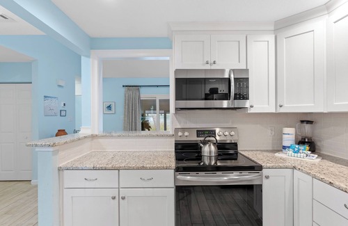 Stunning villa in Bayou Village with a GOLF CART included! This Bayou Village Villa has undergone a complete renovation with custom finishes and tasteful furnishings that reflect the colors of the sea. “Relaxing and peaceful” in every way describes this residence.