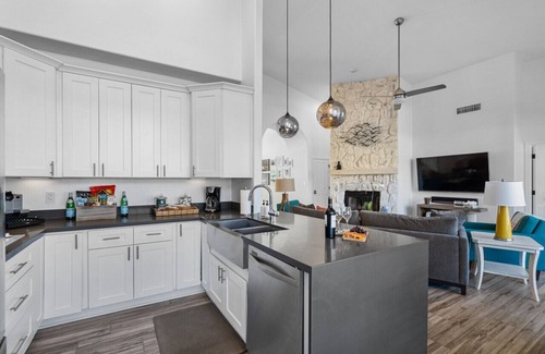 Spend mornings fishing from your private dock, afternoons cruising on the complimentary pontoon boat, and evenings relaxing in the heated pool or spa. Inside, you’ll find bright, modern living spaces, a fully stocked kitchen, and cozy bedrooms refreshed in 2023 with mid-century flair.