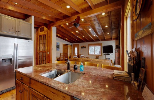 Enjoy sitting in the living room looking out the large picture windows or playing games around the warm gas fireplace. This area has vaulted ceilings and is open to the dining room and kitchen. You will find everything you need to prepare meals fit for a king in the gourmet kitchen!