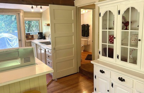 This 2 bedroom cabin is well maintained and sparkling clean. Dine and relax in the sun room with floor-to-ceiling windows offering unobstructed views of the private landscaped garden. In summer, enjoy the large private deck with picnic area, BBQ, and views of the surrounding woods. In winter, relax by the gas fireplace with a steaming mug of hot chocolate and enjoy the serenity of the falling snow. Soak in the claw-foot tub after a day of hiking the nearby National Forest or skiing the groomed trails.
