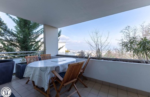 This apartment on the 1st floor of a residence on the heights of Royat has it all! A breathtaking view of Clermont-Ferrand from its large balcony, a large bright living room... We already see you on vacation there! You will have the feeling of staying in the city while staying in the green thanks to the Bargoin Park which is just a stone's throw away or the vast expanses of the Auvergne Volcanoes Regional Natural Park a little further up when leaving the city. A good compromise to please everyone, isn't it? The apartment consists of: -a large living room with kitchen and living room opening onto a balcony terrace -two bedrooms each with a 140 bed -a bedroom with two 90 cm beds -a bathroom/WC -a bathroom -a separate toilet A garage is at your disposal on request as well as a bicycle room. Free parking in the residence, not assigned. In another building of the residence, you will have access to a small gym and a sauna common to the entire co-ownership. Access to the residence via a climb (not recommended for low cars) Prices for 3-week cures on request