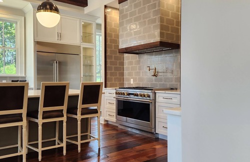 Kitchen: The home features a state-of the art kitchen with a large refrigerator, separate beverage refrigerator, six (6) burner dual fuel range with griddle, and enormous island. There is a mudroom and laundry room off the kitchen with large-capacity washer and dryer and boot wash area. There is also a convenient powder room.