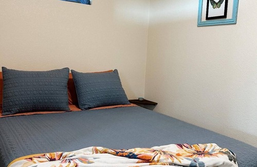 In the bedroom you will find a comfortable queen sized bed with a TV. The living room also boasts a smart TV and love seat. Frieda has a small dining area, the kitchenette has a microwave and mini fridge with freezer and a set of dishes, glasses and silverware. There is coffee maker with all the fixings for a great cup of coffee or tea. The bathroom has a full shower and hair dryer.