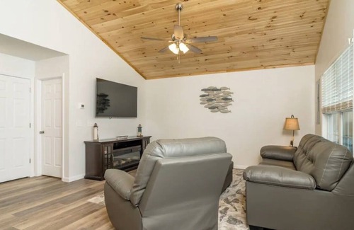 This river front property host up to 6 people so you can enjoy fishing, kayaking, tubing or just sitting on the front porch watching nature. Hot tub on the back deck for you to enjoy. Fire pit in the back yard or enjoy a fire by the river while you grill out. This water front property is the perfect getaway for any family or friends.