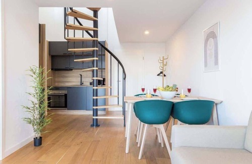 The apartment is unique as it has a balcony with a view of the Vosges Mountains, an infrared sauna and relaxation loungers with massage/heating function as well as a private roof terrace of 75 square meters. Are you looking for a special accommodation for your stay up to 6 people? Then you've come to the right place!