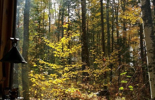 The Woodlands cabin is tucked away in the woods. It is the most isolated, private dwelling. We consider it our honeymoon suite with its comfortable and cozy queen-size bed.