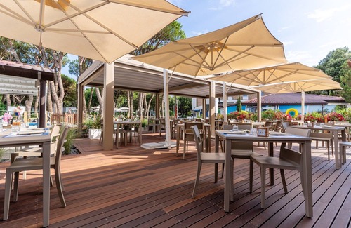 An oasis in the middle of lush nature and with a private beach! The Jesolo Mare Family Village offers everything you need for the perfect holiday. The gently sloping beach is ideal for children to swim or build sandcastles. Parents can relax on the loungers (for a fee) or take part in activities such as bocce or aqua fitness. Your physical well-being is also taken care of: the restaurants serve pizza, pasta, seafood and much more - everyone will find something to their taste here. You will live in a new, modern mobile home for the discerning taste with a spacious, fenced-in veranda. Here you can end the evening comfortably with a glass of wine. 50 hours of use of the air conditioning are included in the price, after that there is a fee. This is what the resort offers: - Reception - Restaurant, pizzeria, bar - Pool for adults and children (sun loungers subject to availability and for a fee) - Sports activities such as beach volleyball and table tennis - Wellness center with massages, steam bath, whirlpool and experience shower (for a fee) - Supermarket, bazaar, newsstand and tobacco shop - Bicycle rental - Games room - Charging station for electric cars (for a fee) - Coin-operated washing machine Dogs are allowed in some types of the holiday village - there is even a separate dog pool and dog playground for them! You will receive a bracelet on site with a cashless payment system - so you can conveniently shop for your purchases and souvenirs at any time. Of course, a trip to Venice is a must on this vacation! Ask about excursion options on site, where you can book various tours of the area directly.