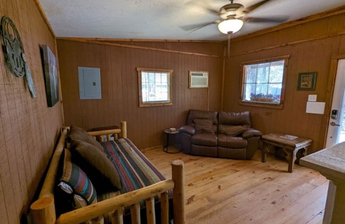 Our adorable one-bedroom cabin is located on The Mountain at the Old Mill Marketplace in Canton, TX. It's tiny but mighty! While it's only one bedroom, we have enough space to accommodate up to 4 people.