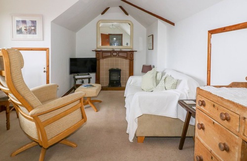 Amenities: Electric central heating. Electric oven and hob, microwave, fridge with ice box, toaster, kettle, TV and WiFi. Fuel and power inc. in rent. Bed linen and towels inc. in rent. Car park adjacent to apartment. Large lawned garden and patio areas with furniture, BBQ and pond. Sorry, no pets and no smoking. Shop and pub 0.2 miles. Note: This property is not suitable for children under 7, but babes in arms are welcome. Note: Please bring own beach towels