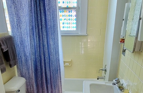 The kitchen is ready for you to cook as much or little as you prefer with its modern appliances such as a microwave, stove, refrigerator/freezer, Instant Pot, and air fryer, plus a full set of dishes, glasses, and cooking utensils. While there is no dishwasher, disposable items are provided for convenient clean-up after your meals.