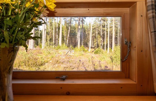 The chalet is perfectly positioned within a wooded area of the Cairngorms National Park resort, offering a tranquil and secluded setting surrounded by natural forest landscape. The peaceful location provides an ideal environment for those seeking a retreat in nature.