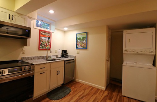 Lovely, first floor apartment on a quiet street in Chautauqua's North End! is located in Chautauqua. Lovely, first floor apartment on a quiet street in Chautauqua's North End! provides accommodation, featuring Parking, Balcony/Terrace, Security/Safety, among other amenities. This Apartment features Parking, Balcony/Terrace, Security/Safety, to make your stay a comfortable one.
