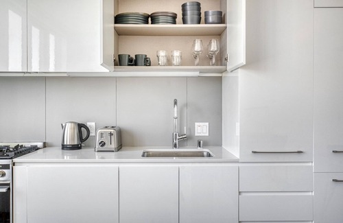 Thoughtfully designed with bespoke finishes, modern furnishings, and a fully equipped kitchen, you’ll enjoy that “I’m home” feeling with this Blueground apartment. Whether you’re lounging in your sophisticated living room streaming the latest and greatest entertainment on the smart TV or premium wireless speaker, or getting some well-earned rest on the superior quality mattress with luxury linens, you’ll fall in love with everything this SoMa apartment has to offer. This apartment also offers in-apartment laundry.