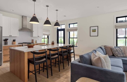 This lush townhome in the heart of Stowe can fit up to 20 guests with its 10 bedrooms and 6.5 bathrooms. With its modern amenities, this home is great for those wanting to unwind after their Stowe adventure. The professionally designed spaces offer open-concept layouts and kitchen & dining spaces perfect for entertaining.
