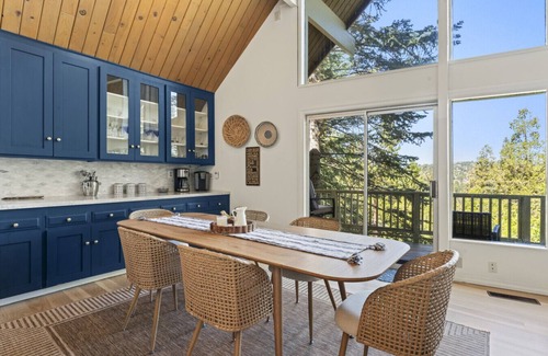 Located in the exclusive town of Blue Jay in Lake Arrowhead. The town of Blue Jay itself is a few minutes drive away where there is a variety of dining, Jensen`s Grocery and Starbucks. Drive a few minutes more to Lake Arrowhead Village with more shops, dining, and seasonal entertainment like summer concerts and holiday festivities. Our lake passes for guests allow access around the private trails on the lake and beach club access to Tavern Bay and Burnt Mill Beach Clubs. For those looking to hit the slopes, Snow Valley is about 17 miles away, if there is no snow to jump around in right outside the door! Our house backs up to the beautiful hiking trails of the San Bernardino National Forest.