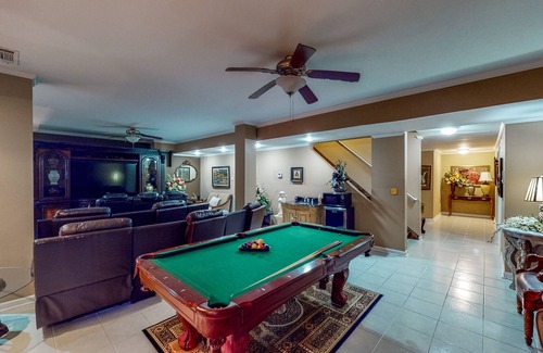 The perfect getaway, this beautiful home has all the luxe extras a guest would want under one roof! Enjoy multiple living areas, including a private home theater with a wet bar, wine fridge, microwave, and pool table. An exercise room provides a great way to kickstart the day with a morning workout, and several office nooks/work spaces make it easy to work and learn remotely.