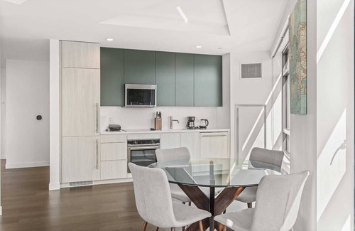 You will be welcomed into a spacious and luxurious 2 bed, 2 bath apartment in the heart of Fenway-Kenmore, Boston. Perfect for up to five guests, it will transform you from city to sanctuary with its stunning viewpoints, thoughtful design and communal amenities such as the rooftop pool and fitness center.