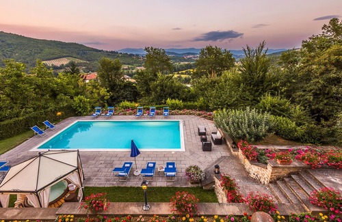 This impressive property in Monterchi offers you a unique holiday experience. Vaulted and stucco ceilings, ornate ceiling paintings and high-quality, classic furnishings turn every room into a small work of art. The beautiful garden with its terraces is a green oasis that invites you to relax. Enjoy sunny hours by the pool, a refreshing swim or a stylish al fresco dinner, always accompanied by a marvellous view of the surrounding countryside.