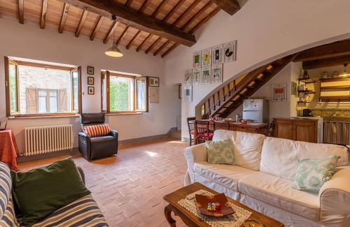 This typical Umbrian country house is part of a 17th century estate consisting of three buildings overlooking the surrounding countryside all the way to Todi.
