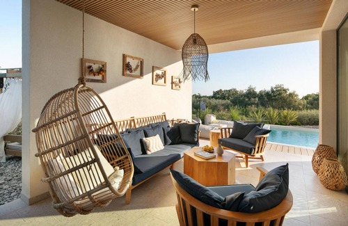 Built in 2023 in a contemporary construction style, this villa offers its guests 100 m2 of living space, while the total area of the property is 800 m2. A maximum of 5 people can stay in the villa, while the optimal number of guests is 4. It is fully air-conditioned, and guests will be comfortably accommodated in the 2 bedrooms located on the ground floor. One bedroom contains a double bed (160x200), while the other room has 2 single beds (90x200). The villa has one ensuite bathroom with a shower, and another regular bathroom also with a shower. A fifth person can sleep on the couch in the living room.